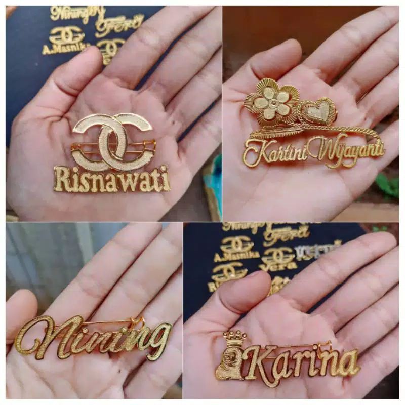 brooch emas tulis nama